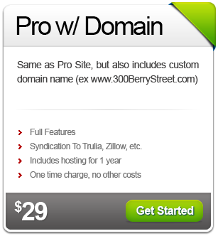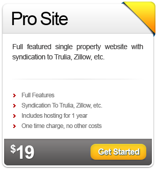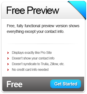 How long will my site be hosted?Hosting lasts for 1 year. Do my property sites include a domain name?Every site includes a unique web address such as www.viewlisting.info/47 . Pro Sites W/ Domain include a fully custom domain name, such as www.121frontstreet.com Can I order sign riders?Sign riders are available for $29, UPS shipping included. Will my site be linked from Realtor.com?If you have enhanced listings at Realtor.com your site can be linked free. Otherwise, it's an additional $20 per listing. Are there any setup or cancellation fees?No! There are no hidden fees, and you can cancel anytime. Do my property sites include free text marketing with call capture?Yes! Your sites include FREE text message marketing with call capture! Every property site generates a special text code that you can put on sign riders. When people text that code, they get a text message back with property info, and you get a text message with their phone number instantly! Other Questions?Contact Us and we'll usually get back to you within minutes. We also offer many custom plans, so please don't hesitate to contact us.
