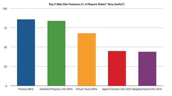 It means that not only are buyers using the internet in droves, but that a huge amount of them are unattached buyers! Give these buyers what they want, and you'll dramatically increase the odds that they'll choose you to work with. According to NAR's 2008 Profile, the five features below are what buyers want most from your real estate website: